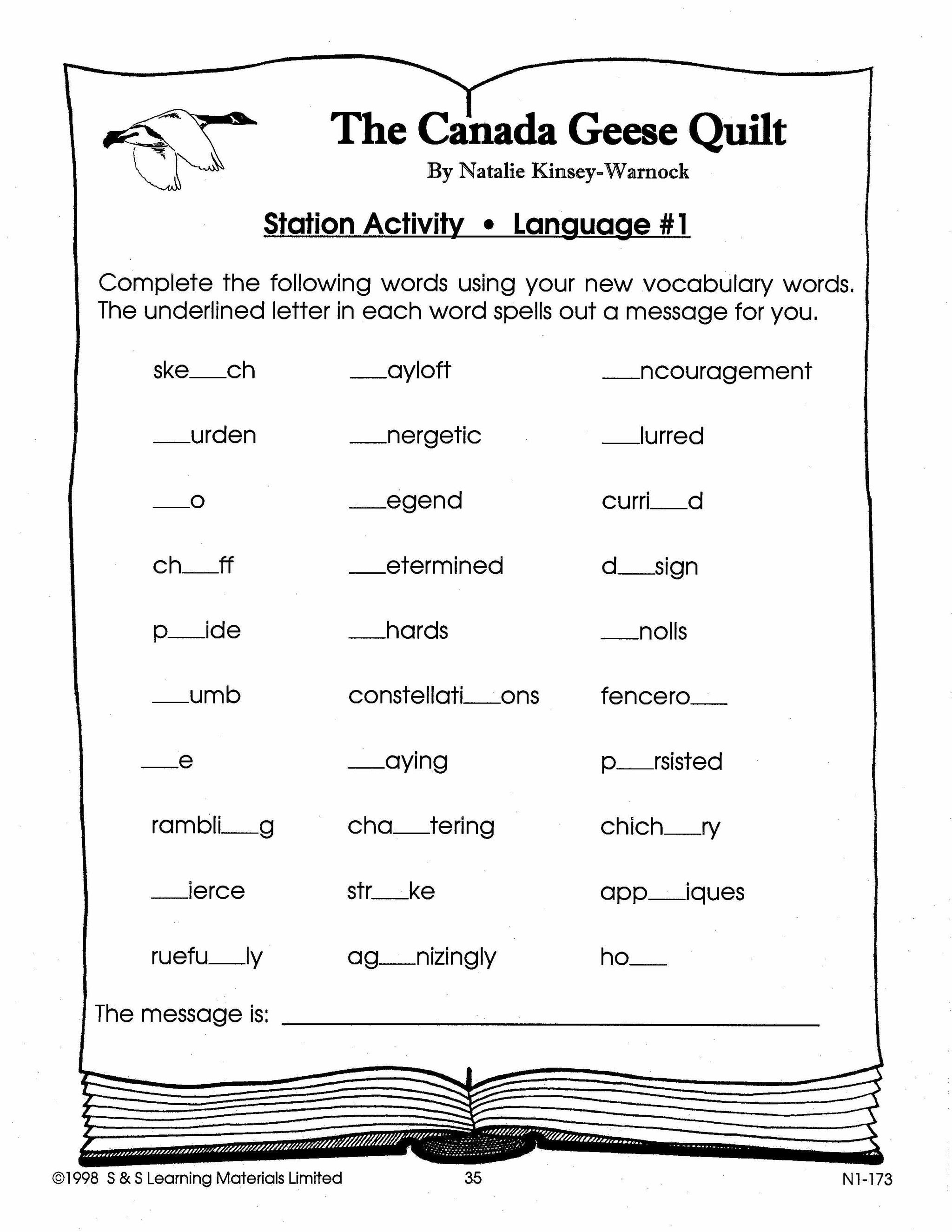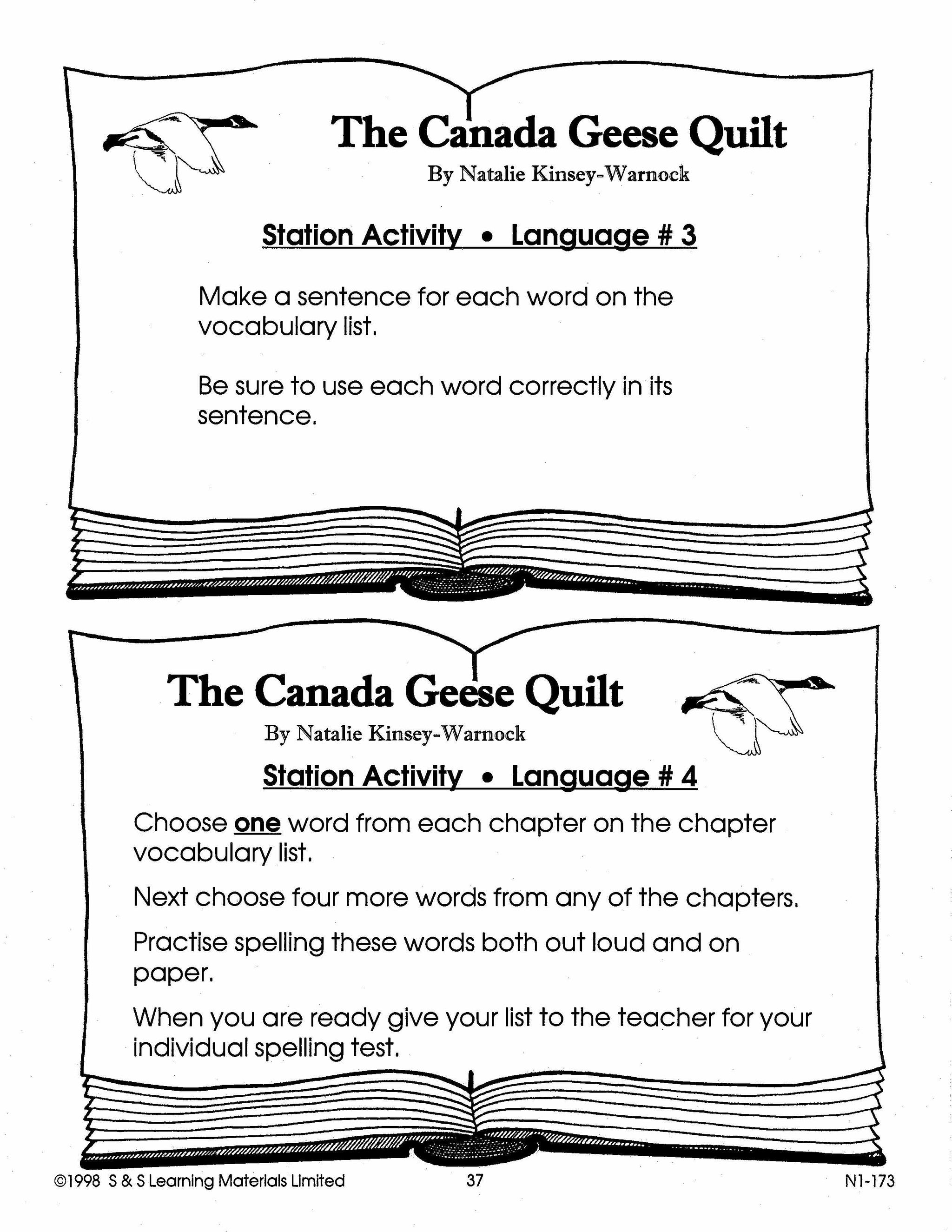 The Canada Geese Quilt Lit Link/Novel Study Grades 4-6