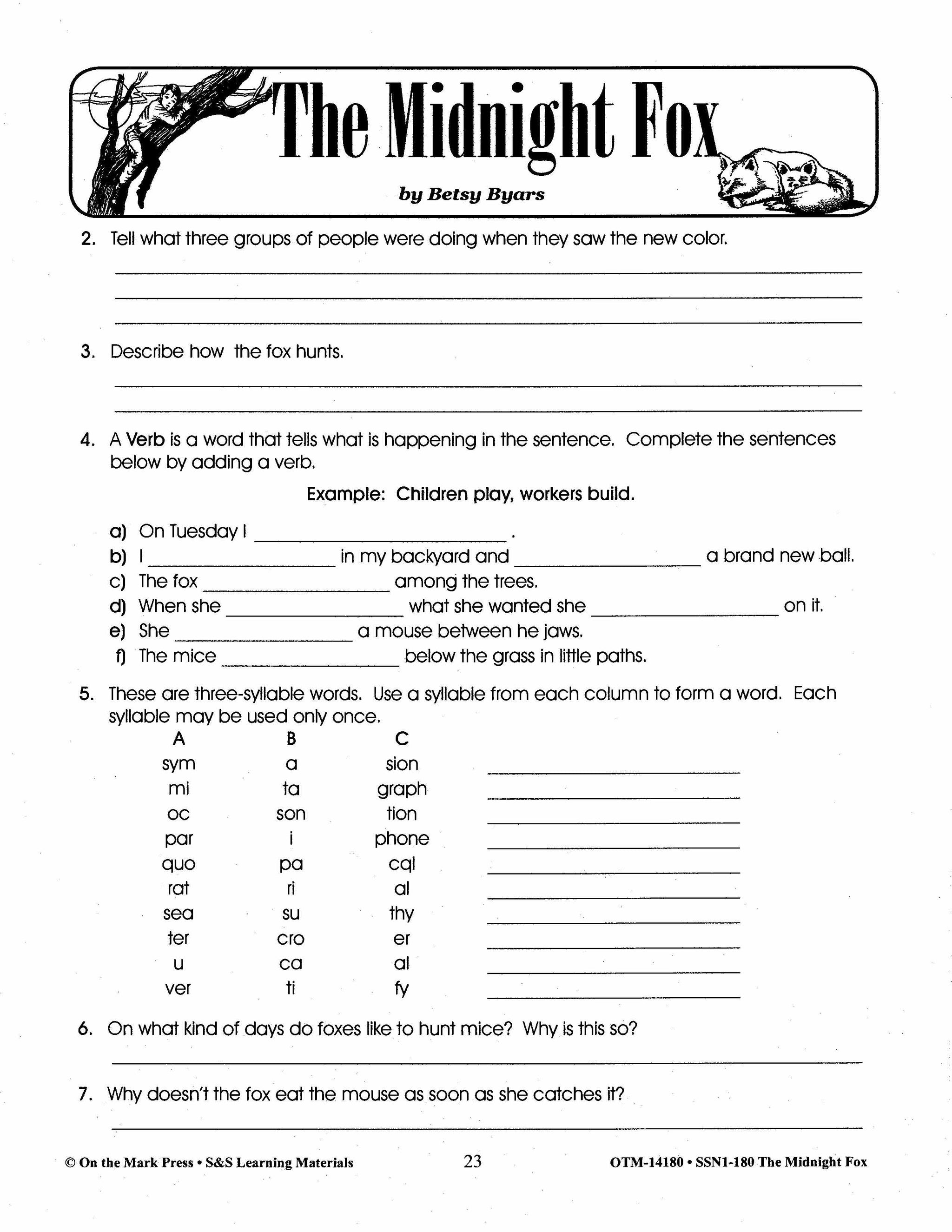 Midnight Fox, by Betsy Byars Lit Link Grades 4-6