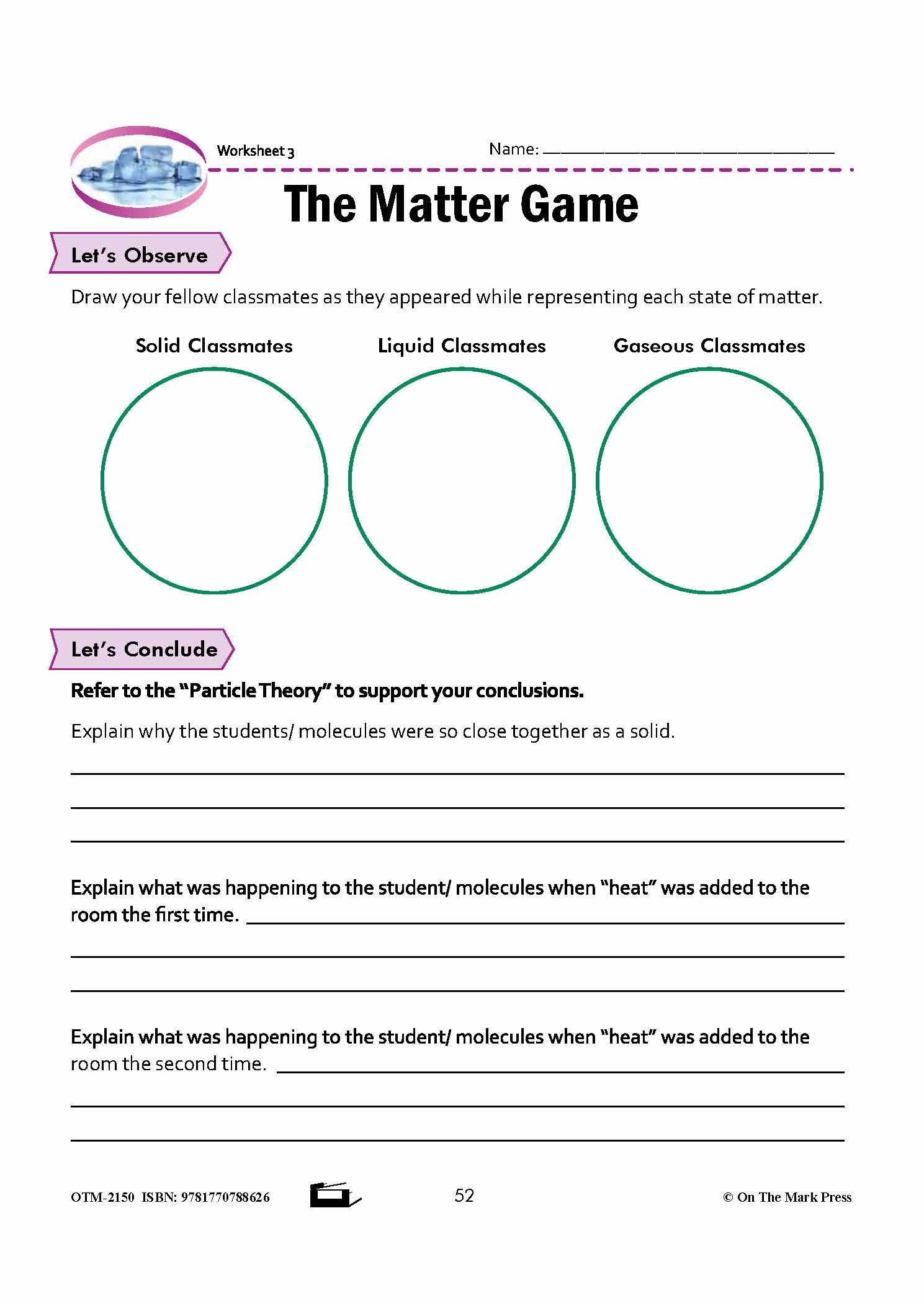 Students will use the particle theory of matter to compare how heat affects the motion of particles in a solid, a liquid, and a gas.