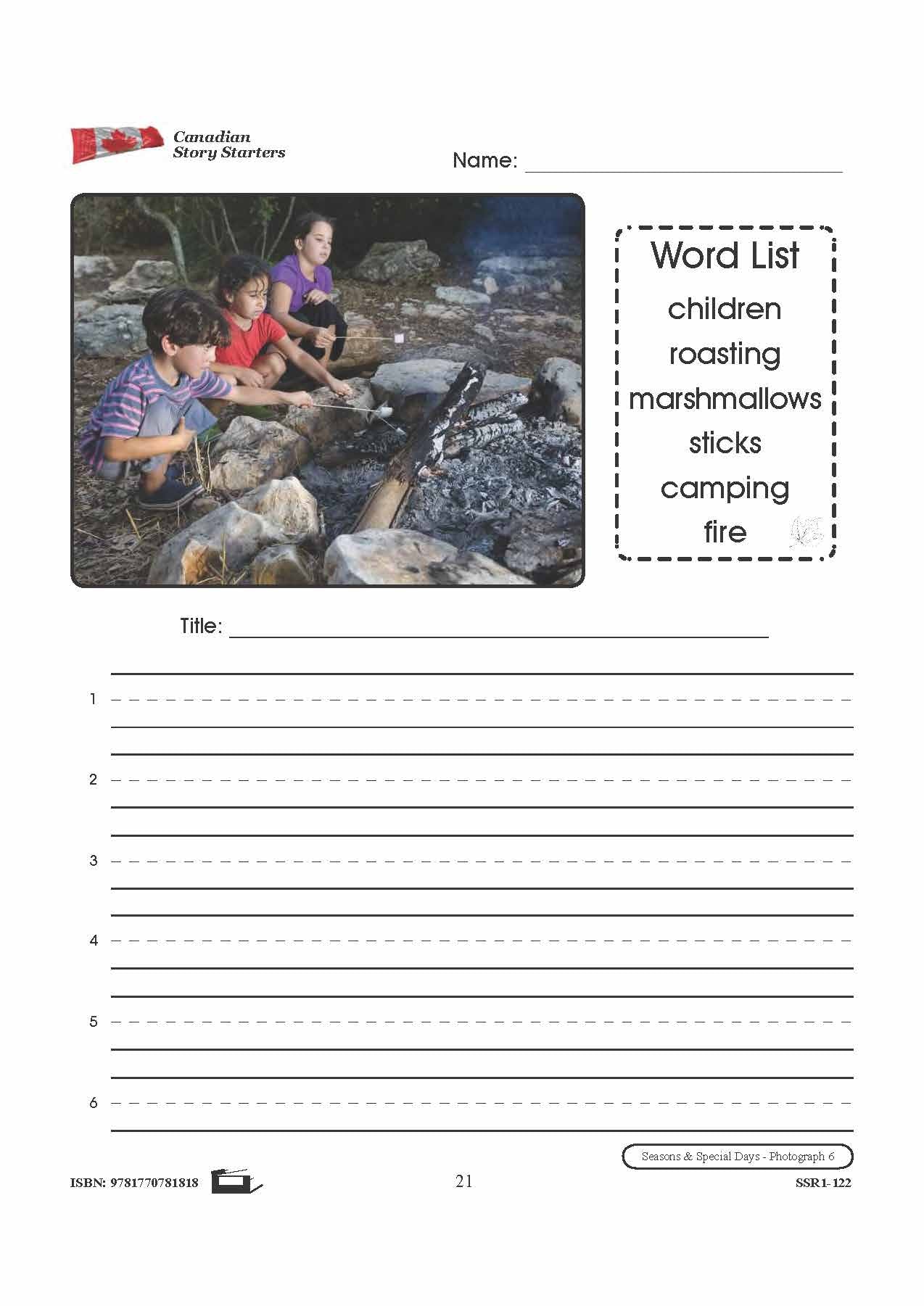 20 story starters contain photographs to inspire student's creativity and knowledge pertaining to Canada's Seasons & Special Days. Each story starter worksheet includes a photograph and corresponding word list, a blank line for the story's title, and numbered blank lines...
