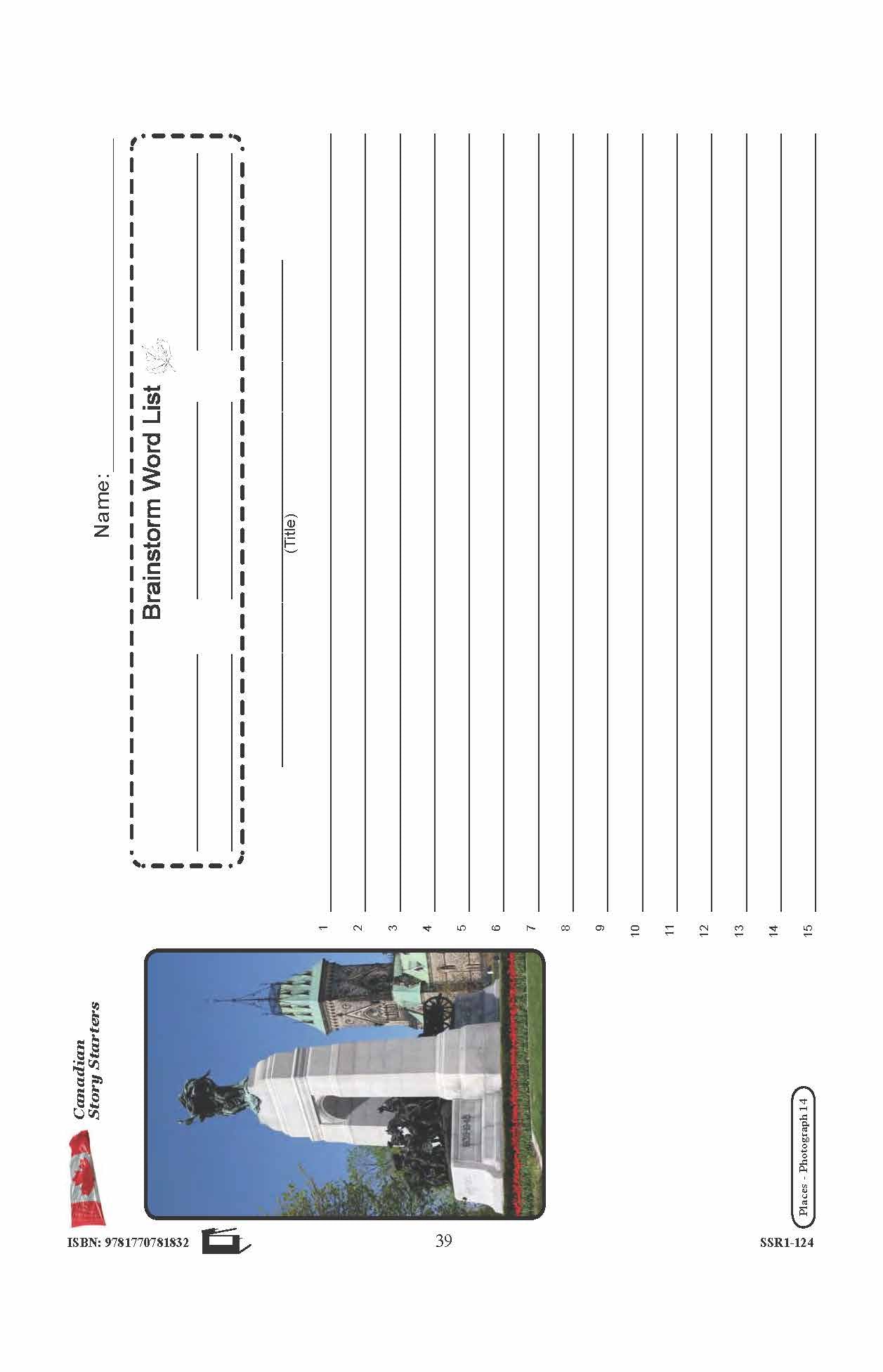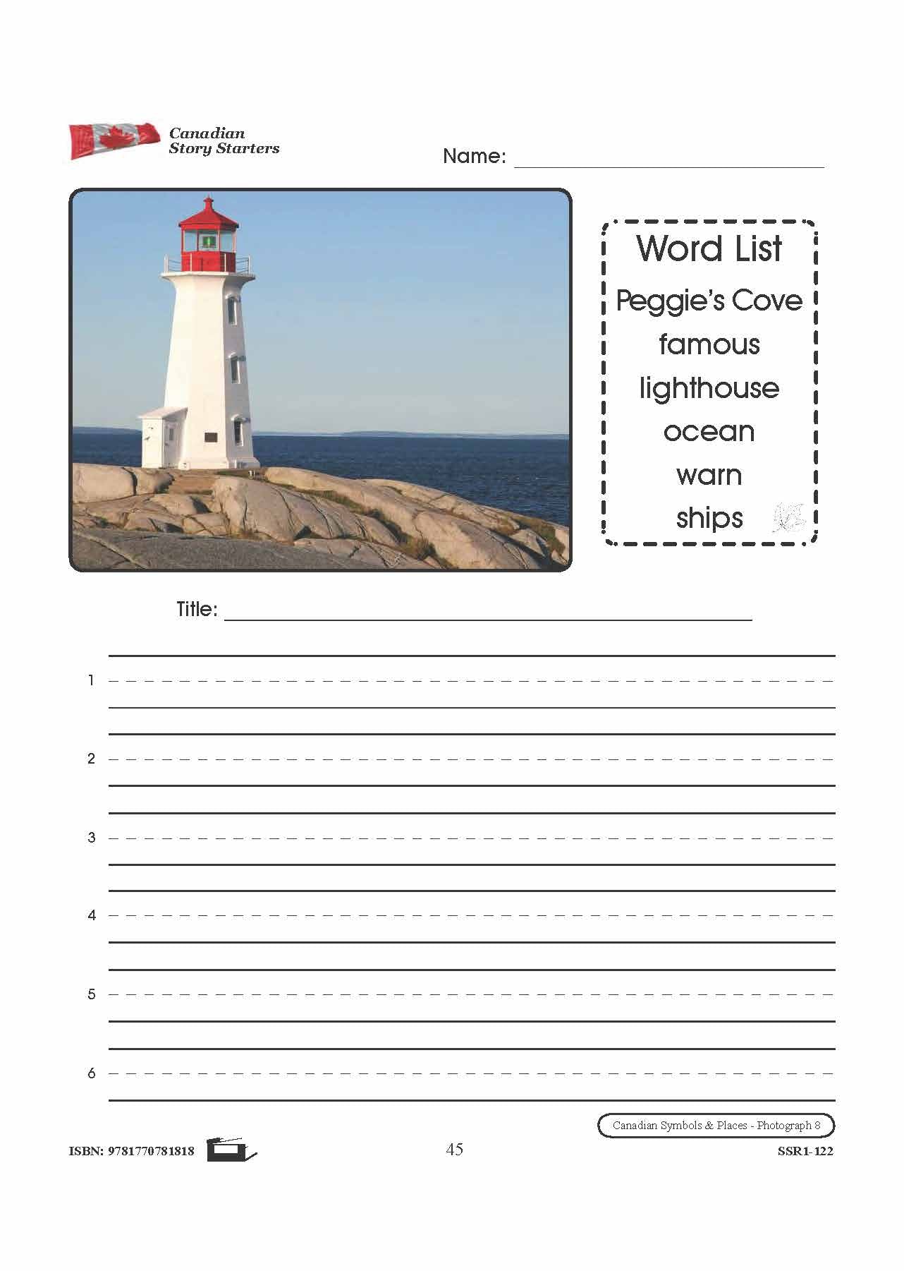 10 story starters contain photographs to inspire student's creativity and knowledge pertaining to Canada's Symbols & Places. Each story starter worksheet includes a photograph and corresponding word list, a blank line for the story's title, and numbered blank lines for...