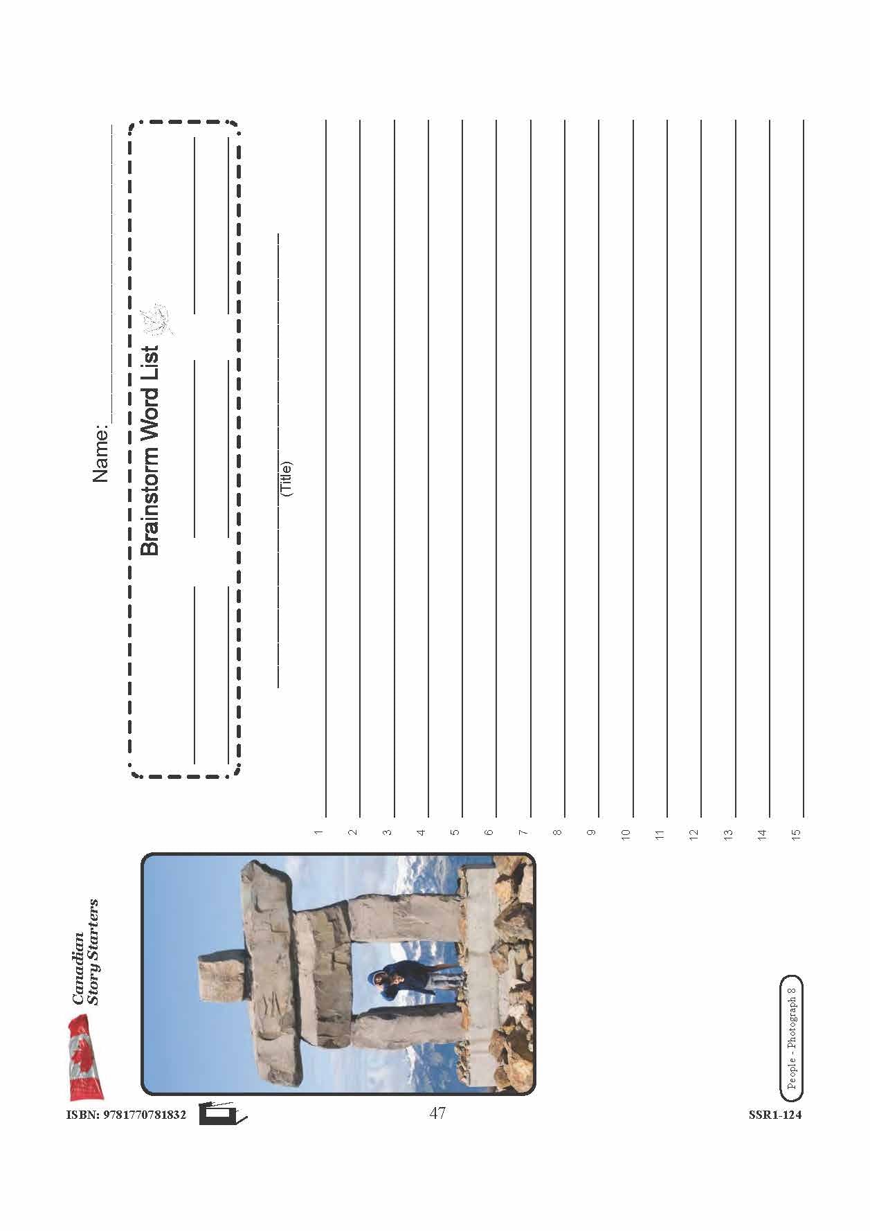8 story starters contain photographs to inspire student's creativity and knowledge pertaining to Canadian People. Each story starter worksheet includes a photograph and corresponding word list, a blank line for the story's title, and numbered blank lines for the story...