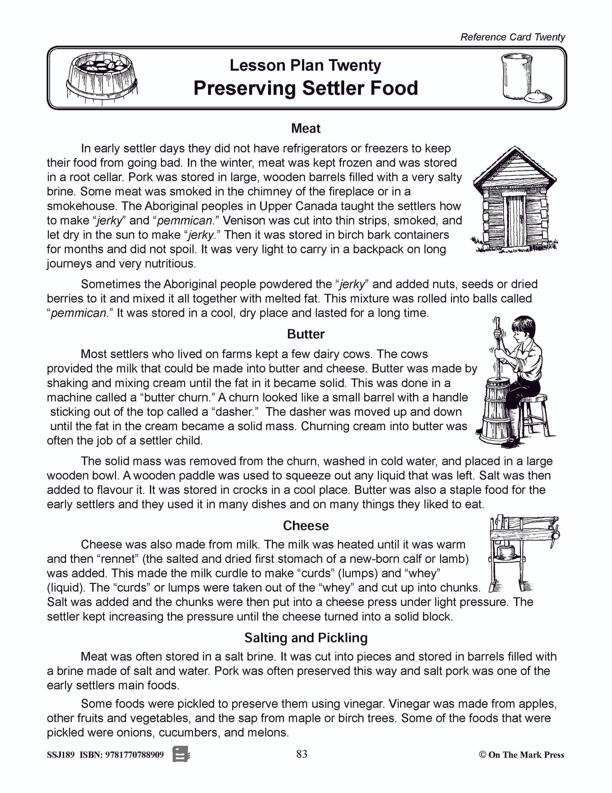 Preserving Early Settler Food Gr. 2-4 - Early Settlers in Upper Canada