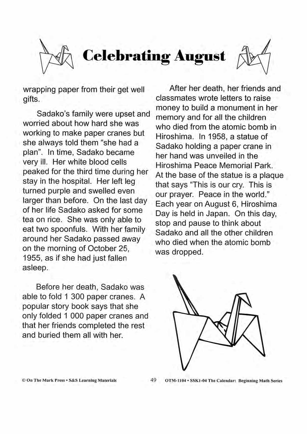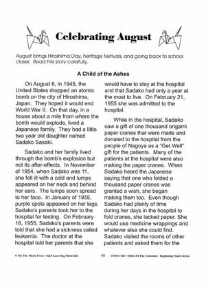 The calendar stories with a follow-up can be used as a reading activity at the beginning of each month. Some of the stories may have to be read to the younger students and the activities discussed orally.