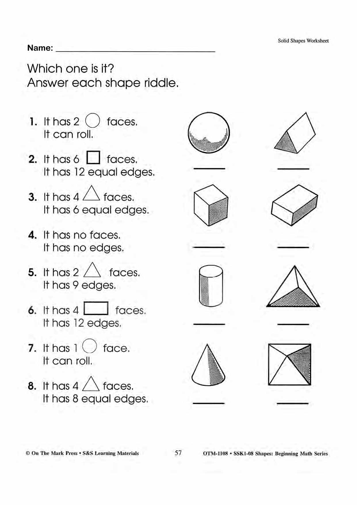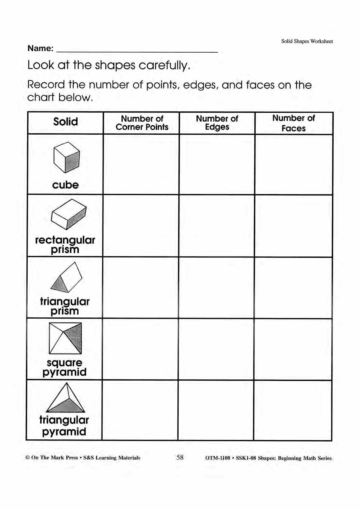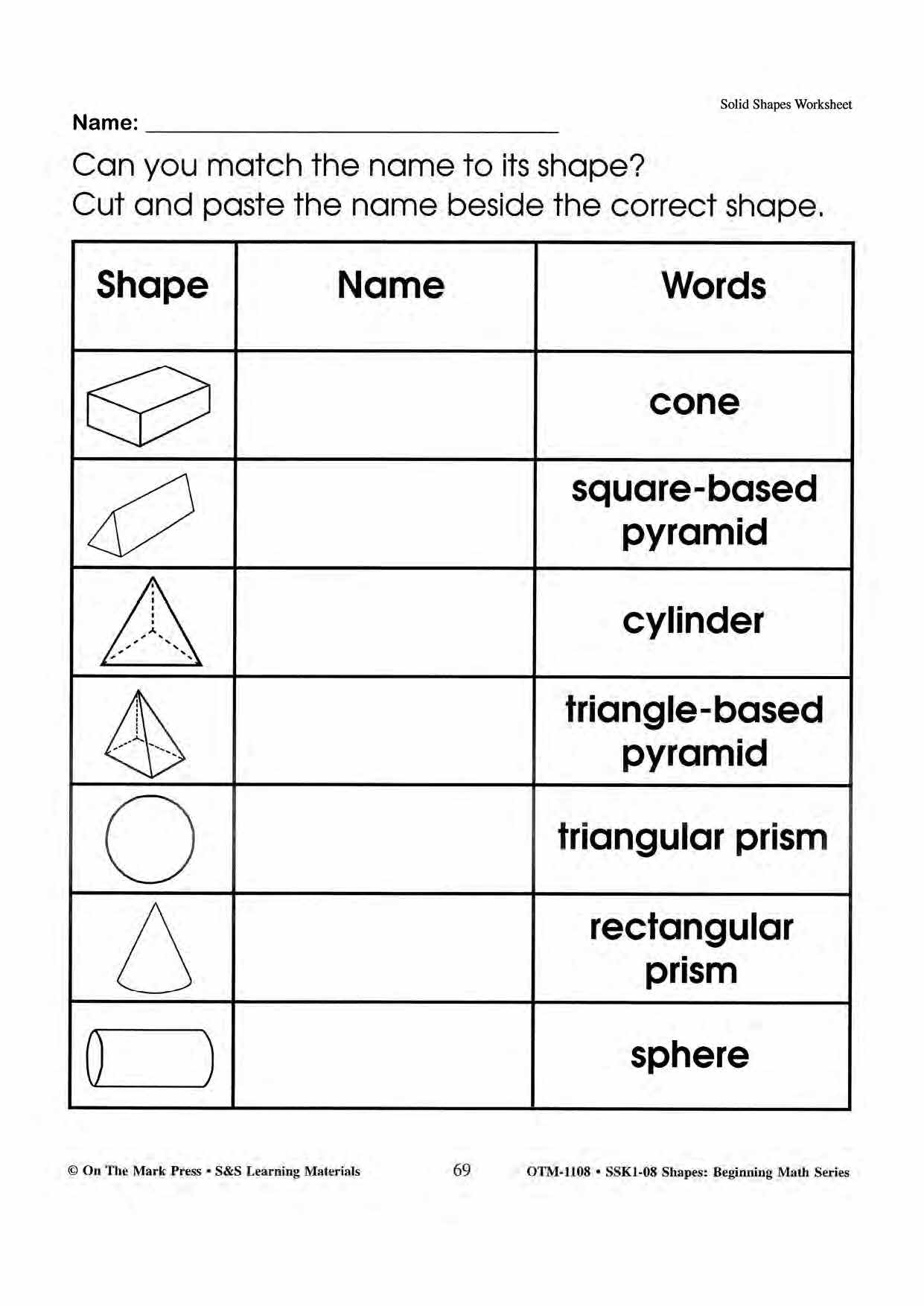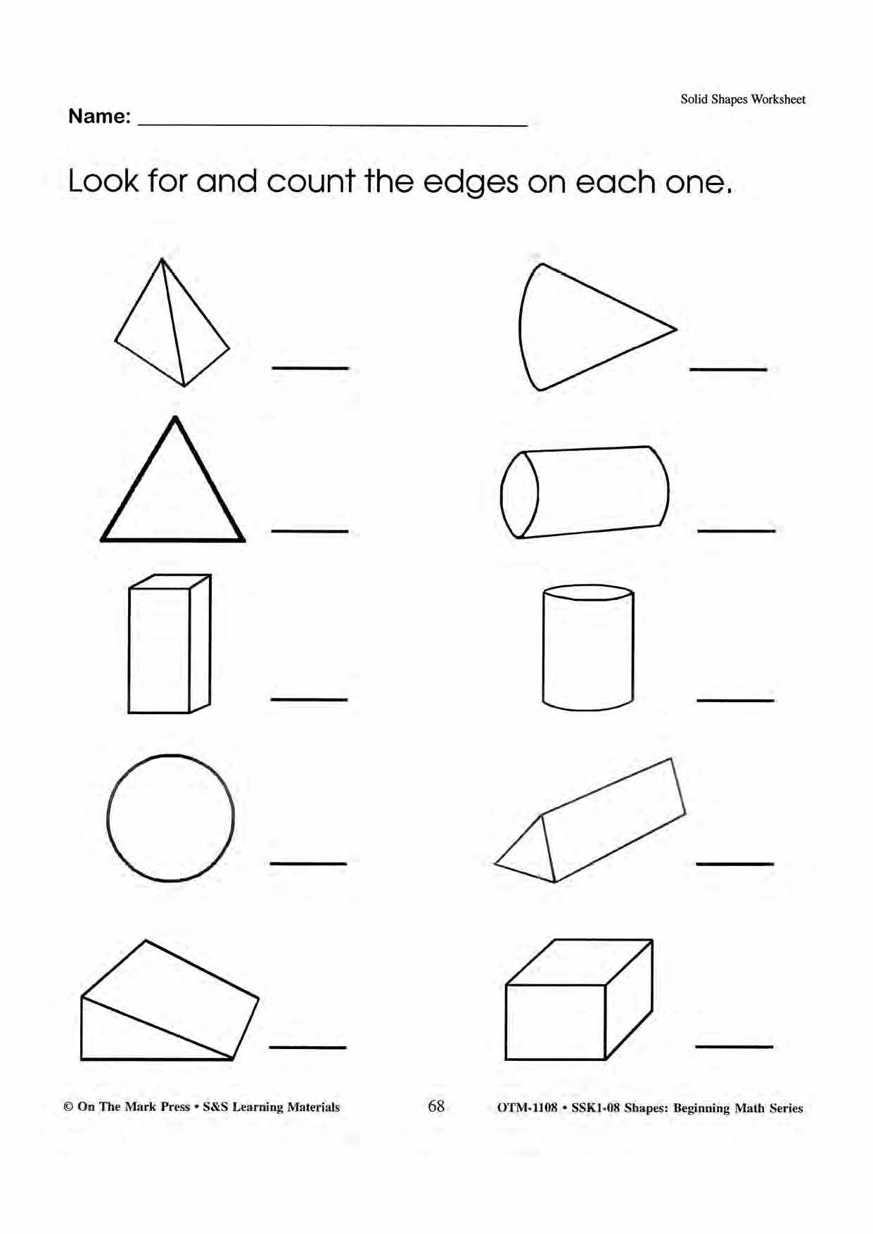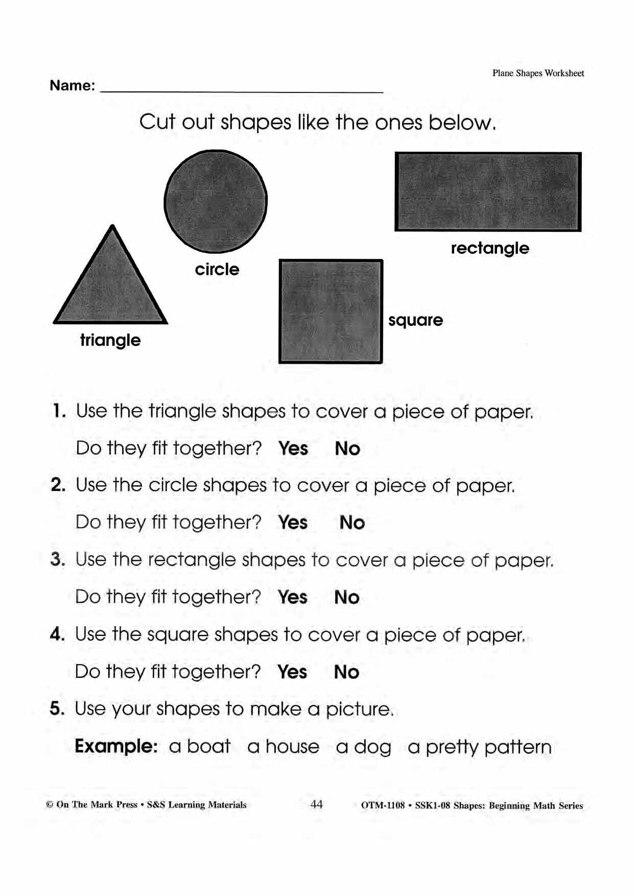 Plane & Solid Worksheets & Center Activities Grades 1-3