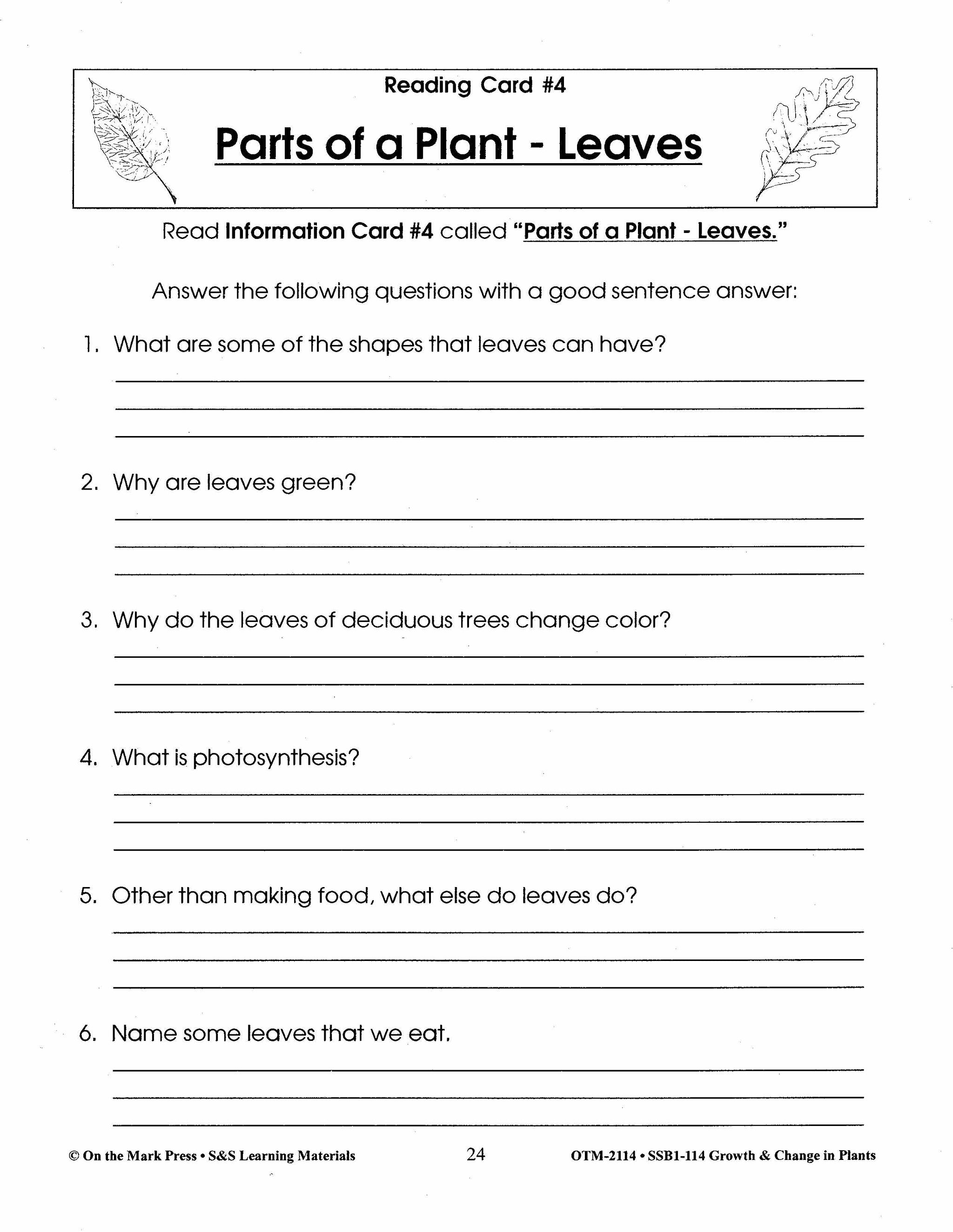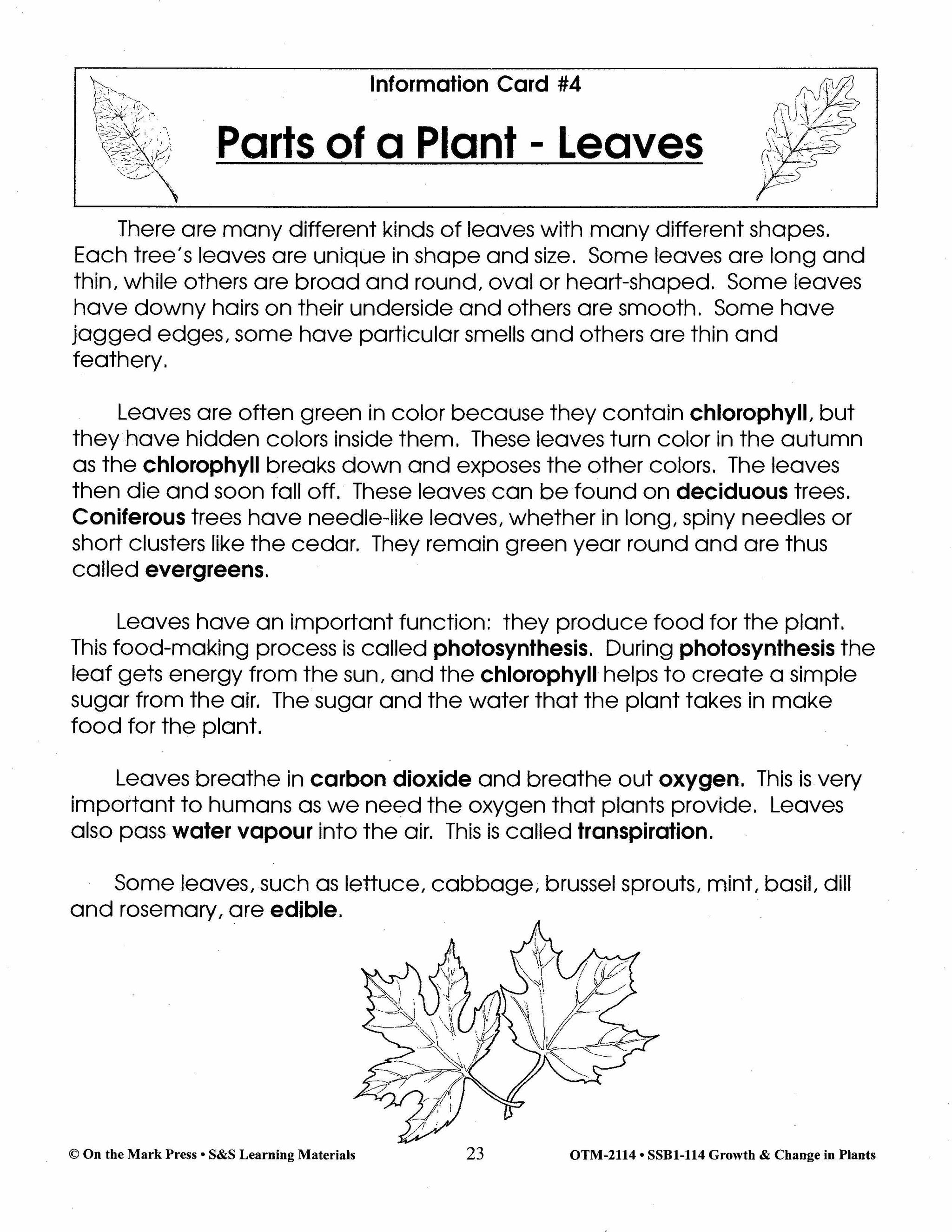 Your students will read the information card on the different kinds of leaves and their importance and then answer the question sheet.. 3 pages