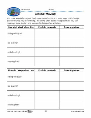 Students will learn how we use our muscles as a force in order to make our bodies move or to make an object start moving, stop moving, or change direction. This lesson plan includes teacher notes and four worksheets.