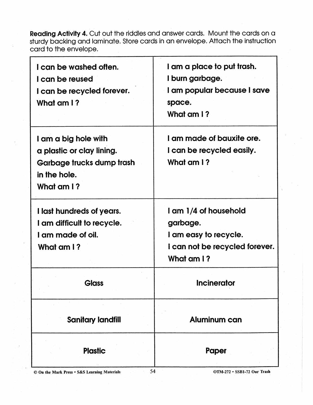 Our Trash 4 Reading Activities Gr. 2-3